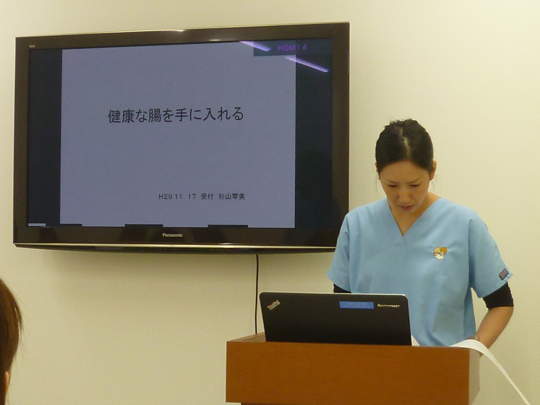『健康な腸を手に入れる』 演者は受付 杉山琴美さんです。